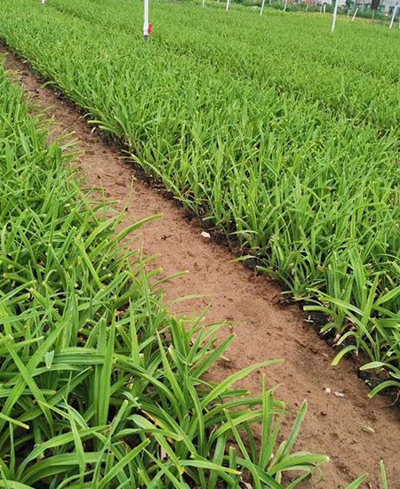 金娃娃萱草(學(xué)名:Hemerocallis fulva ‘Golden Doll’):是萱草的人工栽培的園藝品種。地下具根狀莖和肉質(zhì)肥大的紡錘狀塊根。葉基生,條形,排成兩列,長約25厘米,寬1厘米。株高30厘米,花莛粗壯,高約35厘米。螺旋狀聚傘花序,花7至10朵?;ü诼┒沸?,花徑約7至8厘米,金黃色?;ㄆ?至11月(6至7月為盛花期,8至11月為續(xù)花期),單花開放5至7天。 花期長,葉叢綠色期長,花徑大,單花時間長,株型矮壯。且早春葉片萌發(fā)早,翠綠葉叢美觀。