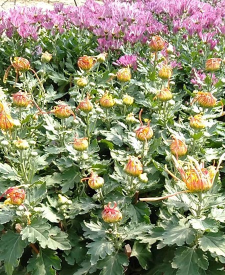 菊花為短日照植物,在短日照下能提早開花。喜陽光,忌蔭蔽,較耐旱,怕澇。喜溫暖濕潤氣候,但亦能耐寒,嚴(yán)冬季節(jié)根莖能在地下越冬?;芙?jīng)受微霜,但幼苗生長和分枝孕蕾期需較高的氣溫。最適生長溫度為20℃左右。
