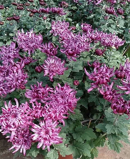 菊花的適應(yīng)性很強(qiáng),喜涼,較耐寒,生長適溫18-21℃,最高32℃,最低10℃,地下根莖耐低溫極限一般為一10℃?;ㄆ谧畹鸵箿?7℃,開花期(中、后)可降至15-13℃。喜充足陽光,但也稍耐陰。較耐干,最忌積澇。喜地勢高燥、土層深厚、富含腐殖質(zhì)、輕松肥沃而排水良好的沙壤土。在微酸性到中性的土中均能生長,而以PH6.2-6.7較好。忌連作。 秋菊為長夜日植物,在每天14.5小時的長日照下進(jìn)行莖葉營養(yǎng)生長,每天12小時以上的黑暗與100攝氏度的夜溫則適于花芽發(fā)育。但品種不同對日照的反應(yīng)也不同。