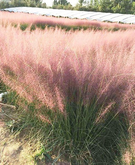 黛亂子草(學(xué)名:Muhlenbergia capillaris (Lam.) Trin.):多年生暖季型草本,株高可達(dá)30-90厘米,寬可達(dá)60-90厘米。頂端呈拱形,綠色葉片纖細(xì)。頂生云霧狀粉色花絮,花期 9-11 月,成片種植可呈現(xiàn)出粉色云霧海洋的壯觀景色,景觀可由9月份一直持續(xù)至11月中旬。 景觀用途:適合大片種植。亦可孤植、盆栽或作為背景、鑲邊材料。