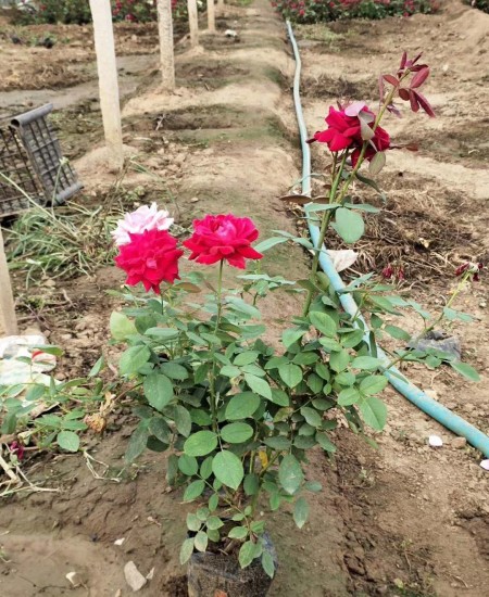 月季花:是常綠、半常綠低矮灌木,四季開(kāi)花﹐一般為紅色﹐或粉色、偶有白色和黃色﹐可作為觀賞植物,亦稱月季。有三個(gè)自然變種,現(xiàn)代月季花型多樣,有單瓣和重瓣,還有高心卷邊等優(yōu)美花型;其色彩艷麗、豐富,不僅有紅、粉黃、白等單色,還有混色、銀邊等品種;多數(shù)品種有芳香。自然花期8月到次年4月,花成大型,由內(nèi)向外,呈發(fā)散型,有濃郁香氣,可用于園藝栽培和切花。月季的適應(yīng)性強(qiáng),耐寒、抗旱,不論地栽、盆栽均可,適用于美化庭院、裝點(diǎn)園林、布置花壇、配植花籬、花架,月季栽培容易,可作切花,用于做花束和各種花籃。